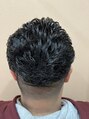 サイド、バックを2mmのバリカンで刈り上げ、トップを強めのヒートカールでバックにかけ、ジェルで簡単にスタイリングできます。