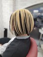 えり足をすっきりと締めて、後頭部に丸みを作ったキレイシルエットのミニマムショートボブスタイルです!大人可愛いショートは丸さが可愛いを作ります!大人かわいい丸みのあるシルエットに!表面のみをブリーチしています。
