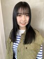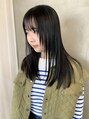 顔まわりに短い毛を作って横からのシルエットにも変化があるようなロングヘアです。暗髪地毛風カラーで艶っぽく仕上げました。ストレートでラフに仕上げるのがかわいいです◎