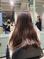 ロングヘアからバッサリとスタイルチェンジ。柔らかい髪質や服装の雰囲気合わせてナチュラルな質感のパーマを。