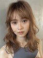 温かみのあるベージュにくせ毛風の大きいカールをミックスさせた雰囲気抜群の抜け感ミディ☆ニュアンスカラー シースルーバング 暖色系カラー スモーキーカラー セミウェーブ 艶カラー シアカラー 20代 30代 40代 おくれ毛 波まきウェーブ TOKIO