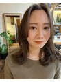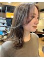 顔周りに後れ毛を作って、まとめた時もラフな可愛さが出るように。カラーはオリーブを混ぜたくすみベージュで透け感柔らかさを出しています,