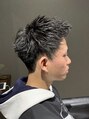 無造作な毛束が躍動感を、ジェットモヒカン風に仕上げたアップバングで若々しさと清潔感を出しています。骨格補正カットを施して、どこから見てもカッコいいシルエットに仕上げました。結婚式やパーティーなど、セミフォーマルな場にもOKのハンサムスタイル。