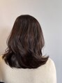 大人の上品さと可愛らしさが残るダークブラウンカラーのミディアム。 カジュアルやフェミニンな服装にも◎ 幅広い世代に人気のミディアムはアレンジもしやすくスタイリングも簡単です!