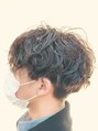 ツーブロックとショートネープにする事でトップ、前髪を重めにしてもスッキリとします。波巻きパーマで動きで軽さを表現。スパイラルを加え柔らかい髪質の方でもトップにボリュームが出て立体感のある動きが出ます。