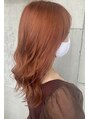 赤みのあるオレンジカラー☆発色しつつも、鮮やかすぎない上品な仕上がりに。イメチェンしたい方にも挑戦しやすいカラーです!!!また、ブリーチ1回でできるカラーなので、ダメージが気になる方にもぜひオススメします!!!