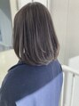 肩くらいのレイヤーボブ。重ためになりがちなヘアスタイルですがトップを少し短くしているので動きのあるボブに。外ハネにしても可愛い長さです。カラーは根元は白髪も染まるように、毛先は赤みを抑えたアッシュ系で