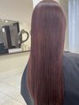 カットはワンレンです!顔周りだけちょっと流す感じの前髪を作ってます!元は明るいですが、ブリーチ履歴無しでのレッドの発色!奇抜に見えにくい楽しみやすいカラーになってます!