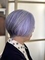 量も多くクセも強いので、収まりの良い耳に掛けれる長さで頭の形にそった重めグラボブ。90%ほどの白髪にライトパープルのマニキュアをオン。ドライヤーのみUTAUリッチオイルセラム