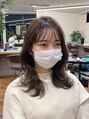 鎖骨に当たる長さで外ハネになる韓国風ウェーブのスタイルです。シースルーの前髪と動きのあるスタイルがお洒落な小顔に見せてくれるスタイルです。
