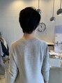 脱白髪染めで根元はおしゃれ染めでナチュラルブラウンにしてますトップがぺたっとならないようにパーマをかけてますショートで動きあるスタイルにしてます