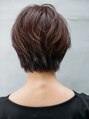 毛先にぱっつん感を残した重めショートヘアです。後ろがピタッとしている分、横に分け目を作ることでトップにボリュームを持たせています。前髪がないスタイルなので大人っぽい印象です。短すぎないショートなので、ショート初挑戦の方おすすめです。