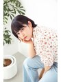 重ため前髪のふんわりショートボブで可愛い雰囲気に。夏らしく花柄ブラウスとピンクメイクで♪