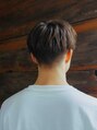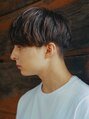 サイドツーブロック4ミリ、えりあし刈り上げのマッシュスタイルです。前髪は目の下くらいの長さで後ろのウエイトからやや前下がりのラインです。ワンカールのパーマをかけています。直毛の方やスタイリングを楽にしたい方におすすめスタイルです。