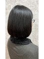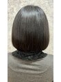 黒髪シンプルボブです。顎下の長さでカット、インナー部分と毛先をすきで毛量調整。結べる長さです。スタイリングはオイルをつけて毛先を内巻きブロー仕上げ。