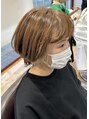 ベースカラーは赤みを抑え、イヤリングカラー部分はワンブリーチ後に薄いベージュを入れてます。