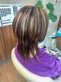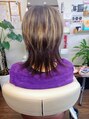 ウルフスタイルバックは長くクビレを作って丸さを残しつつ綺麗な形にサイドは前下がりカラーはハイライト入れてホワイトブラウンを乗せてます。