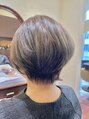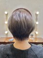 頭の形が綺麗に見え、首が長く綺麗に見えるくびれショート。カラーは白髪染め不使用の白髪馴染ませカラーで白髪をカバーしながら髪の明るさをキープしています。
