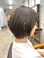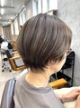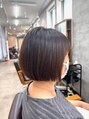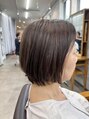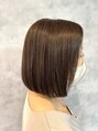 あご下ラインで切る前下がり気味のぱつっとボブ×赤みのでないアッシュブラウンカラー