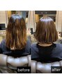 当店の美髪エステは、髪のパサつき、広がり、うねり、艶がないなどでお悩みの方におすすめです!定期的にケアを続ける事で艶髪へと導いていきます。