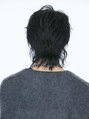 襟足を長めに残したウルフスタイルです。全体的にゆるめの波打ちカールをつけて柔らかい雰囲気をプラス。スタイリングはツヤ感を重視してモードな印象に仕上げています。