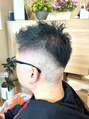 メンズスキンフェードスタイル。立ち上げたスタイリングで毛先に躍動感を出しました^ ^