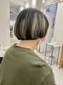 首元すっきりのマッシュライン。重めのシルエットで柔らかいイメージに仕上げてます。前に入れてたデザインカラーの色落ちを生かして、動きある感じに。