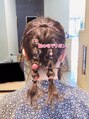 《お任せヘアアレンジ》髪の毛で可愛くリボンをアレンジ!小さなドライフラワーやラメでも華やかに飾り付けました。