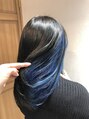 ケアブリーチでインナーカラーをしました♪透明感あるブルーに(^^)表面にのカラーリングもブルーに負けない透明感あるブルーブラックのお色にしました!TOKIOのトリートメントで行うので仕上がりはツヤサラになります!