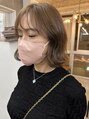 ギリギリ肩につかないくらいの長さに設定!女性らしい可愛いらしい印象のボブstyleに♪colorはケアブリーチを使用してダメージレスなハイトーンカラー♪柔らかいベースの【ロイヤルミルクティベージュ】♪