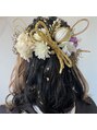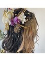 インナーカラーを活かせられるように、ハーフアップスタイルに♪♪飾りが沢山でとても可愛いです☆金箔もお洒落ですね♪