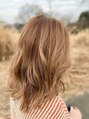 ハイライト、ブリーチ履歴ありのベースですが、少しピンク味のあるベージュカラー(^^)フロントの入れたレイヤーで顔周りに動きが出て華やかでかわいいスタイルです!