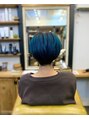 派手髪はお任せください!今回はハンサムショートのグラデーションカラーです♪シャドウルーツで黒からのビビットなブルーのグラデーションに染める事でショートならではの立体感が大幅にUP!!黒から青のコントラストが際立つスタイルです!!