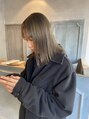 透明感のあるオリーブグレージュカラー◎ストレートアイロンで熱を通しオイルをつけて艶感もしっかり◎