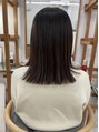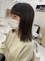 ロングヘアからのスタイルチェンジでミディアムヘアに。前髪の幅を少し広げてワイドバングに。ちょっぴり重ための前髪と毛先の軽さとバランス良く仕上げてます。