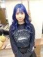 ブリーチ回数1回~。青みよりのネイビーブルー。これくらいの発色にしたい場合、ベースによっては2回必要な場合もあります。両サイドにポイントとしてピンクのエクステを2枚つけました。