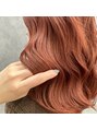 ブリーチ1回のオレンジブラウン!!ケアブリーチでダメージを最小限に抑えキレイにカラーが出るように調合しています♪32ミリのコテでゆるっと波巻きもかわいい・・・