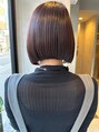 タイトな切りっぱなしボブ!前髪は軽めでカラーも落ち着いたコーラルピンクにしてあります。ラインをしっかり出しているところもポイントです。