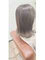 外はねボブにバレイヤージュのスタイルです。ブリーチはもともと2回施術しており毛先のみ3回目のケアーブリーチにて傷みを抑えながらまた、補強しながら施術しており最後はMトリートメントで空洞にタンパク質を補強し、強い髪の毛をつくっています!