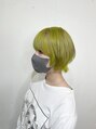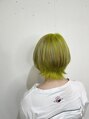 レイヤーボブにカット後ブリーチを2回してからライムグリーンとミルクティーベージュを層ではさんだミルフィーユカラーにしました