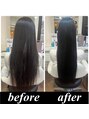 従来の縮毛矯正とは全く異なり髪を弱酸性のままストレートに髪質改善する最新の縮毛矯正です。独自の研究によるサプリメントケアで髪の間充物質を補いながらかけるため固くならず柔らかいシルクのような手触りになります☆