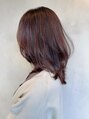 インナーカラーがかわいいミディアムコンパクト外ハネスタイル。表面のカラーは10レベルのラベンダー。インナーカラーはブリーチオンベージュ。