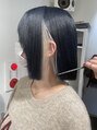 1_カットはボブ2_頭のフォルムを重視しながら前髪をつくり 3_軽めな毛先 4_カラーはブルーブラックに #ブルーブラック#髪質改善#ダブルカラー#小顔#ウルフ#くびれヘア#イルミナカラー#イヤリングカラー#ブルージュ#ベージュ#グレージュ