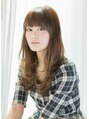 根元のみ縮毛でストレートにして毛先はコテで巻いて仕上げています!フェイスラインはシャギーをいれて より柔らかくみえるようにカットしています。