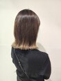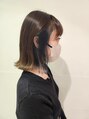 全体にハイトーンのグレージュカラーにし、インナーカラーにブルーカラーが入っています。切りっぱなしボブだからこそ見え隠れするカラーがとても遊び心ありますね!