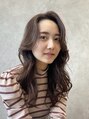 顔周りのフェイスレイヤーでウエイトは上げずに動きをつけることで巻いた時に表情のある髪になります。艶のある上品なベージュブラウン、透け感もありながらこっくりとした肌を綺麗に見える色に仕上げています。少し巻いてオイルで仕上げています。高橋玲子