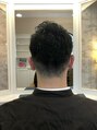 2ブロックや、ナチュラルな刈り上げスタイルも大人気ですが、「格闘家のようなヘアースタイルにしてみたい!」というご希望であえて、角を残し、長短の差をくっきり付けるスタイルに挑戦された男性のお客様のバックショットです。