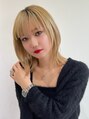 Say.ミディアムホワイトグレージュミニウルフぱっつん前髪表参道