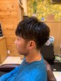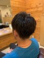 前回のパーマを残しいぎみでレイヤーにカット、ツーブロックを入れバックはハサミで刈り上げました。
