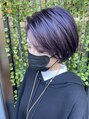 ワンブリーチのオレンジ感に深みのある青紫を入れることでツヤ感のある紫に。